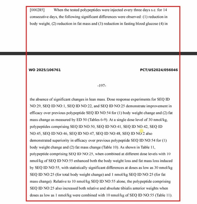 바이오업계 관계자는 “펩트론의 추가 물질 인비보 실험은 릴리 측에서 요청한 새로운 물질에 대한 장기지속제형 적용을 위한 테스트가 유력하다”며 “해당 물질은 릴리가 특허 출원하고 올해 공개된 특허 물질인 UCN2로 알고 있다. UCN2는 GLP-1 비만치료제의 단점인 근육량 감소를 증가시킬 수 있다고 알려진 물질”이라고 말했다.